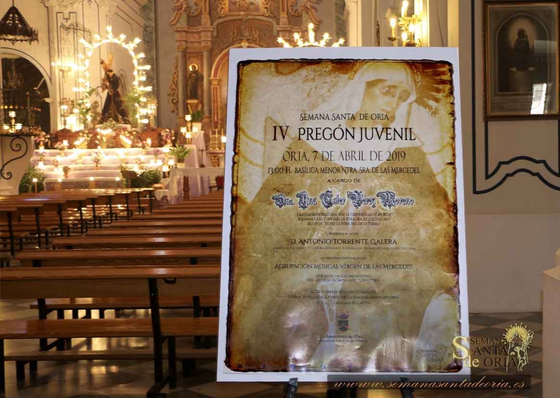 El 7 de abril se celebró el IV Pregón Juvenil de la Semana Santa de Oria en la Basílica Menor Ntra. Sra. de las Mercedes a las 13:00 h.