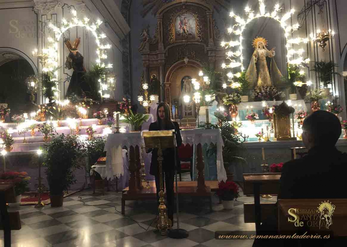 Organizado por el Área de Cultura, Turismo y Deporte del Ayuntamiento de Oria, esta cuarta edición repitió escenario y acompañamiento musical a cargo de la Agrupación Musical Virgen de las Mercedes. La encargada del mismo fue Dña. Ana Ester Pérez Moreno, Graduada en Medicina por la Universidad de Murcia, hermana de la Cofradía de Ntra. Sra. de los Dolores y Mujer de Trono de Ntra. Sra. de la Piedad.