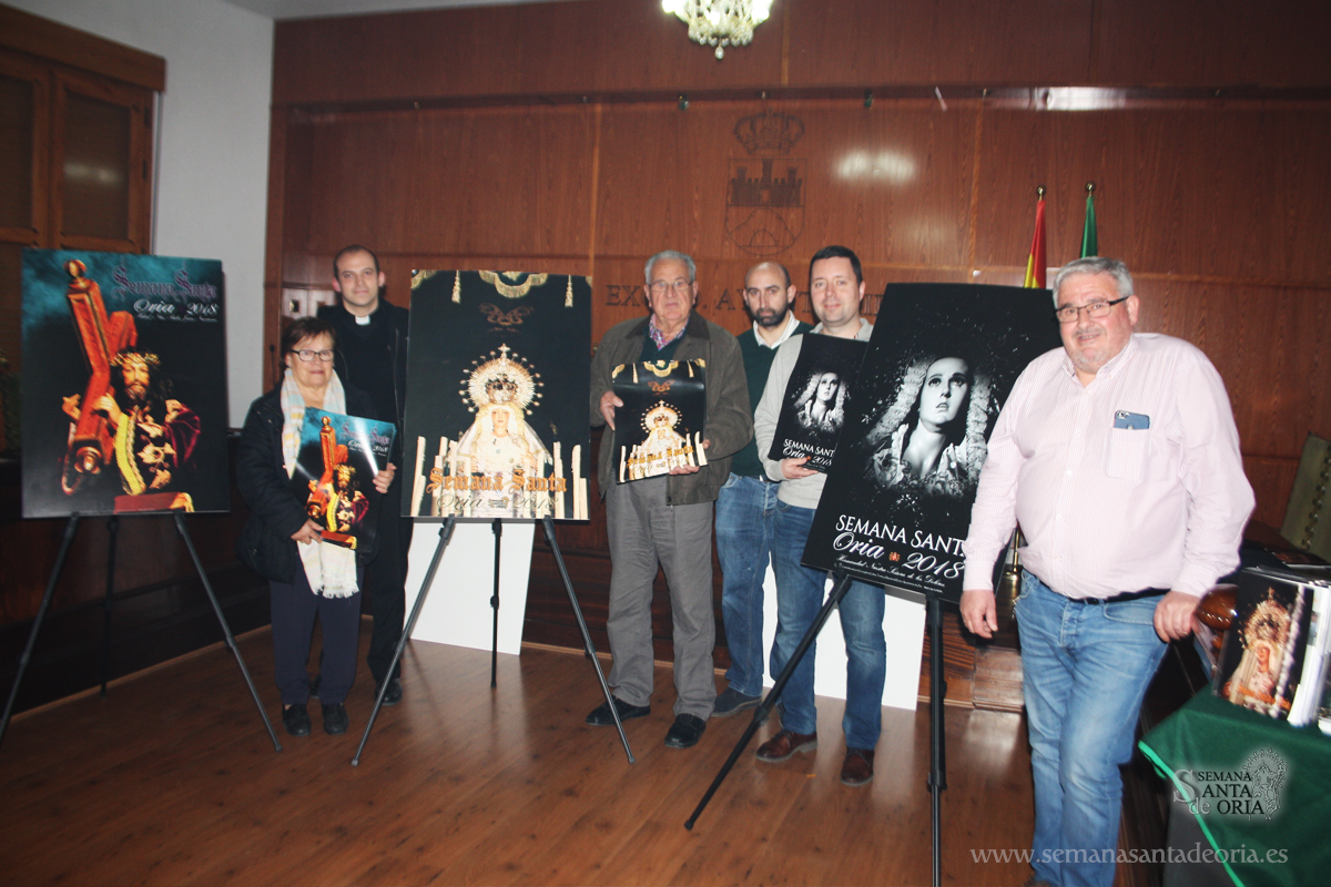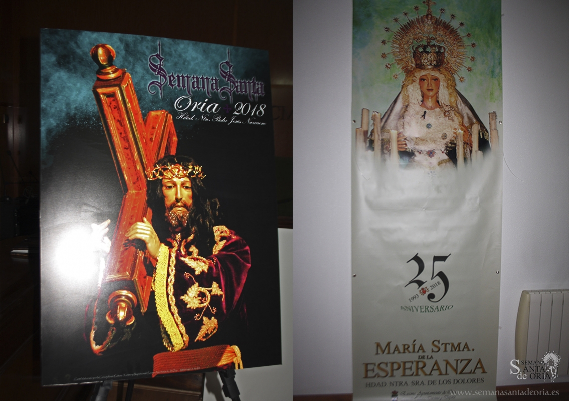 Al acto acudieron una treintena de vecinos que, en un ambientado salón de actos, descubrieron los detalles de la Guía de la Semana Santa de Oria 2018 y los carteles de Ayuntamiento y Hermandades. Al término del acto se descolgaron los faldones cofrades y las lonas conmemorativas.