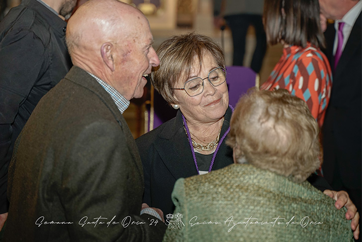 Nuestra pregonera de la edición 2024, es una persona ligada a la Semana Santa de Oria en gran medida y forma parte inseparable de la Hermandad del Padre Jesús Nazareno a la que ha dedicado gran parte de su vida. Agradecida por el encargo recibido y consciente de la dificultad del mismo, agradeció el apoyo recibido de su familia, compañeros y amigos.