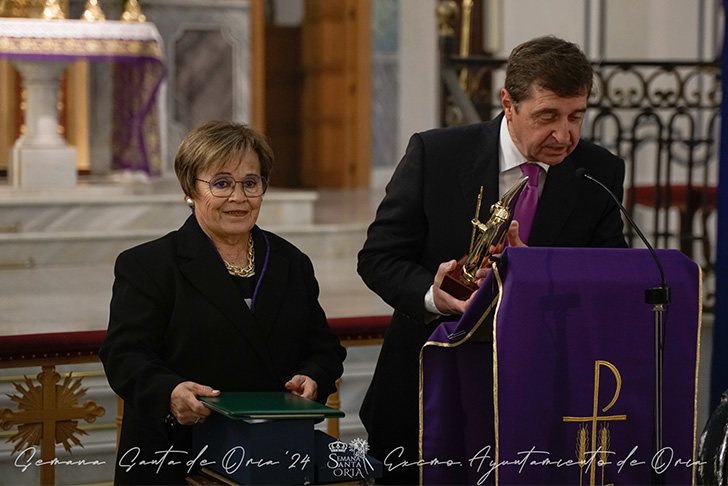 Dña. Maruja Teruel Torrecillas, fue la encargada de realizar el XIV Pregón de la Semana Santa de Oria, en la la Basílica Nuestra Señora de las Mercedes (Oria) el 22 de marzo de 2024, durante la celebración del Viernes de Dolores.